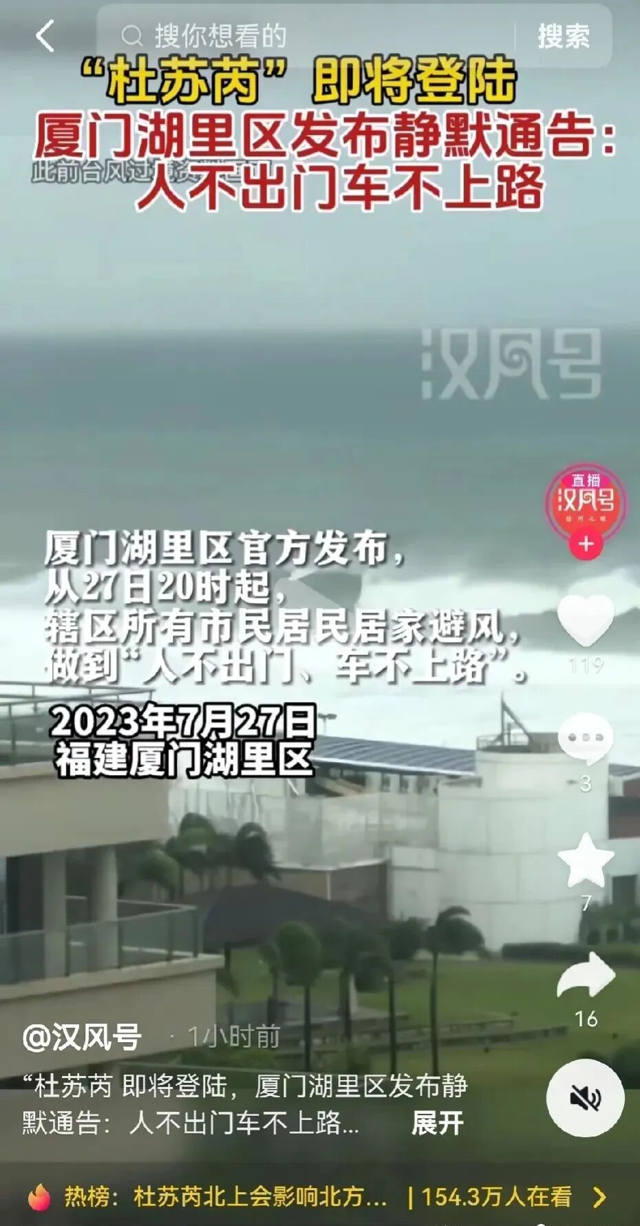 导语:经历过2016年同级别台风“莫兰蒂”,见识到了强台风带来的巨大破坏力。这次福建厦门等沿海地区的人们都纷纷提前做好防御台风“杜苏芮”的准备,网上随处可见大家认真防御台风“杜苏芮”的场景。