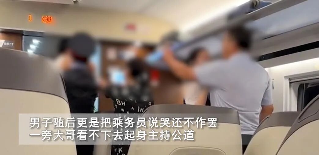 8月8日,浙江杭州有一名男子在高铁商务座上与乘务员发生争执。