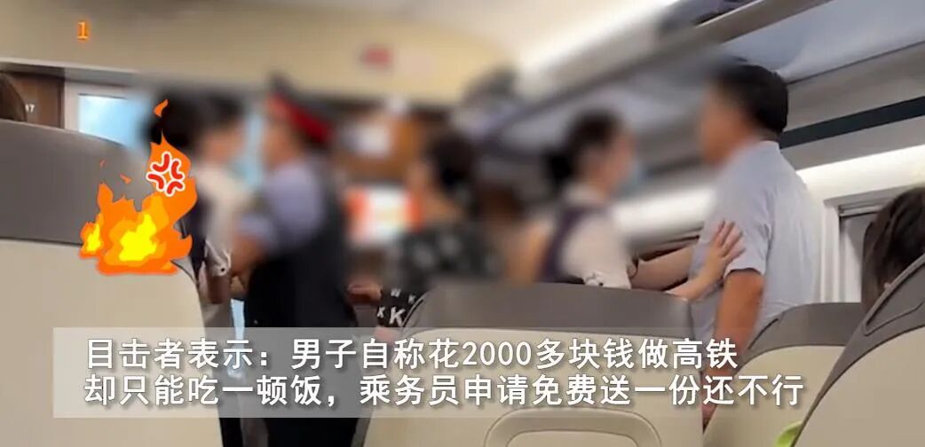 起因是他觉得自己花了2000元坐商务舱,但高铁上只提供了一顿免费餐食。