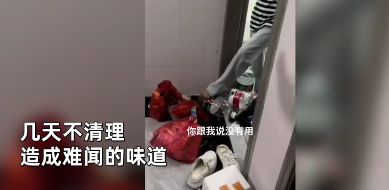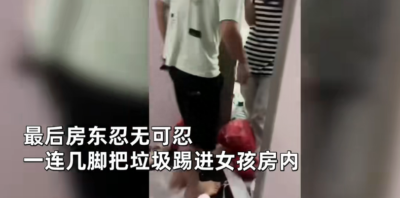 看着女孩子慢悠悠地用脚拨弄着地下的垃圾,面对自己和邻居的质问她仍旧不愿动手去清理,房东都快被她气急了,直接用脚将垃圾踢回了女孩房间里。