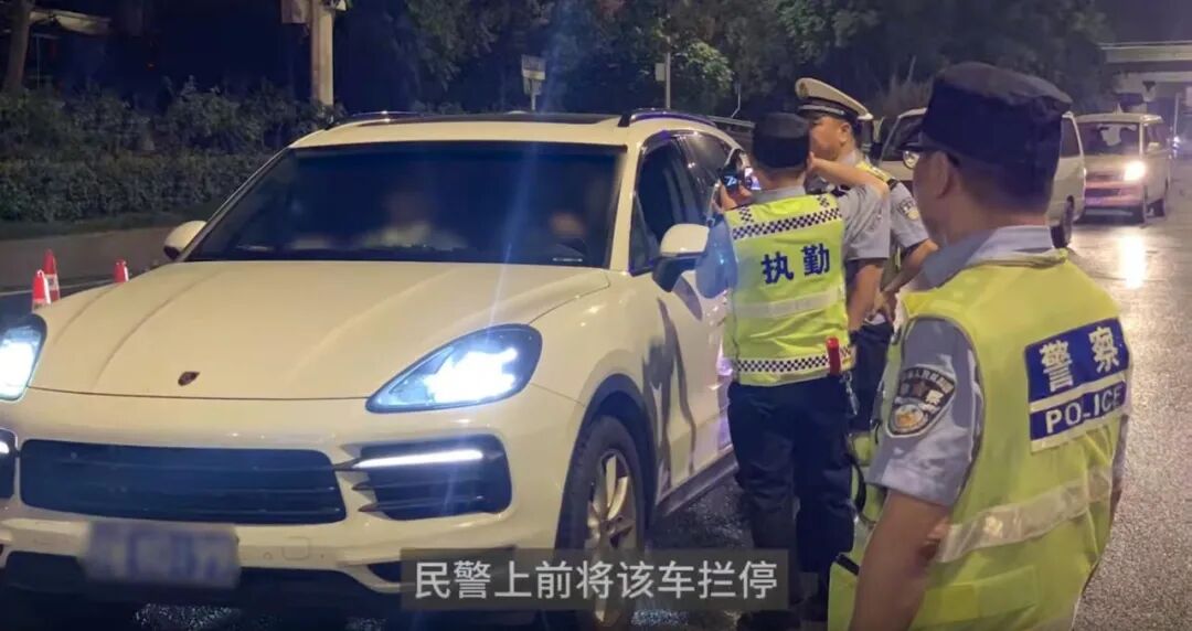 此时,交警们警惕地察觉到了这个异常现象,迅速上前去拦住了这辆可疑的白色轿车,并指示驾驶员打开车窗,接受他们的检查。