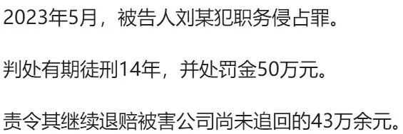 再后来,被刘某挪用的约1.23亿元巨额公款,大部分被追回(约1.2268亿元),所幸集团公司的经营没有受到此事太大影响。