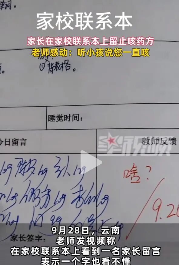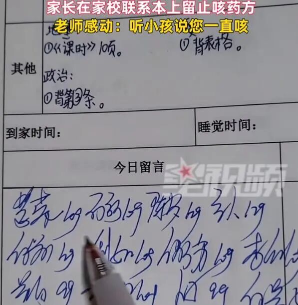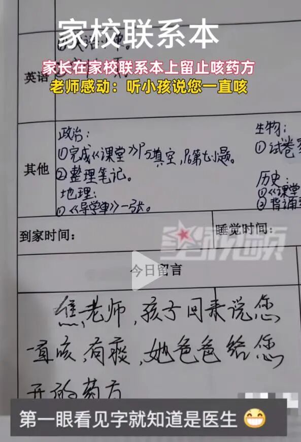 导语:热心家长在家校联系留言本上写止咳药方,老师表示看不懂,回复写道:“啥?”,这是怎么回事呢?