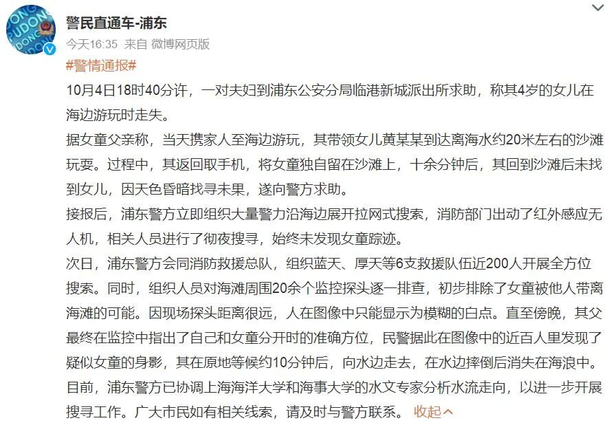 导语:一名叫黄元芯的4岁小女孩在海滩失踪,引发大家担忧,大家都无法理解,她的家长怎么能把这么小的孩子独自放在海滩边玩呢?