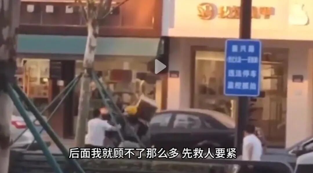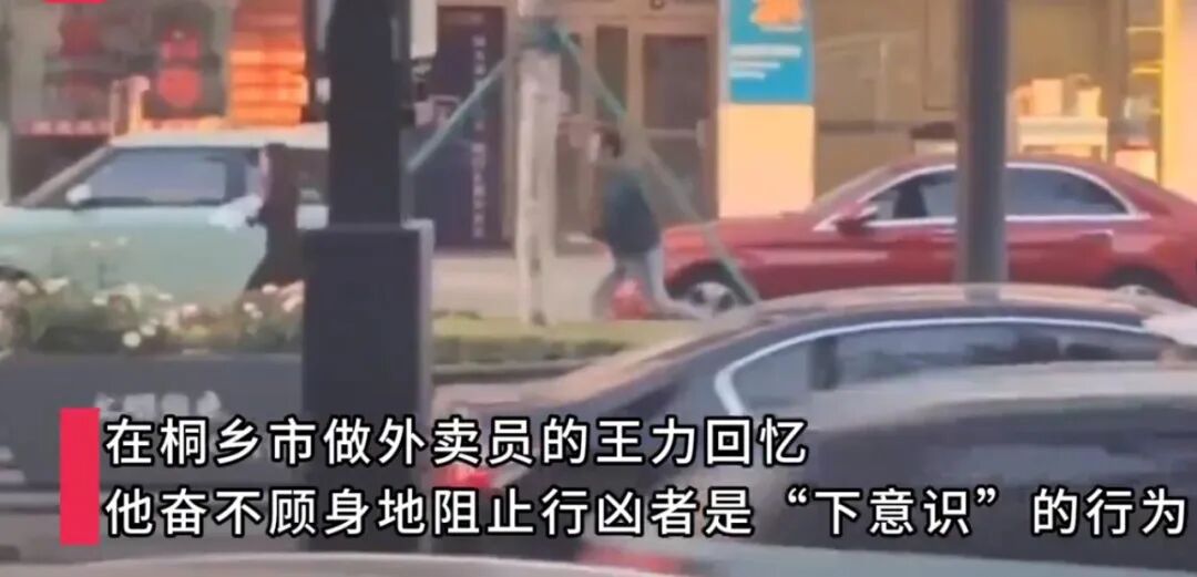 之后不断有男路人跑过来帮忙阻止这名男子继续行凶,据其中一名外卖小哥(王力)事后描述,当时他看到一女子躺在地上,头上脸上都是血,所以也顾不得那么多了,随手拎起旁边的一个停车标识架就冲了上去,朝行凶男子砸去,合众人之力终于将男子制服。