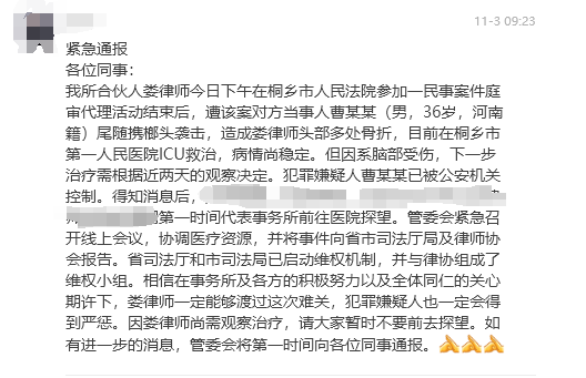 另有网友表示:看来律师也是高危职业,案件要么己方当事人不满意,要么对方当事人不爽,遇到偏激的人,到头来受伤的是律师。