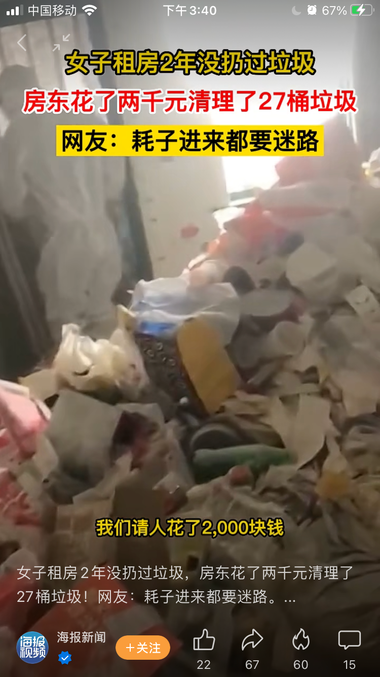 5月18日,今天有个话题#年轻女孩租房2年未扔垃圾#引发网友们的热议。