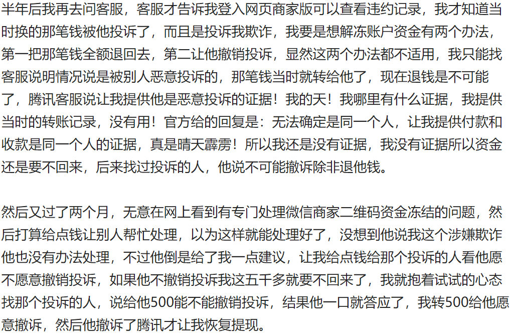今天看到一篇文章,有个生意人把自己的微信商家二维码借给一位陌生人,陌生人先在微信上扫了这个码转钱给生意人,然后让生意人从支付宝上转回钱给他,生意人为此也收了他一定的手续费。没想到就这么简单的一件事情,搞到生意人第二天微信帐户里的资金被冻结了,没法提现了。