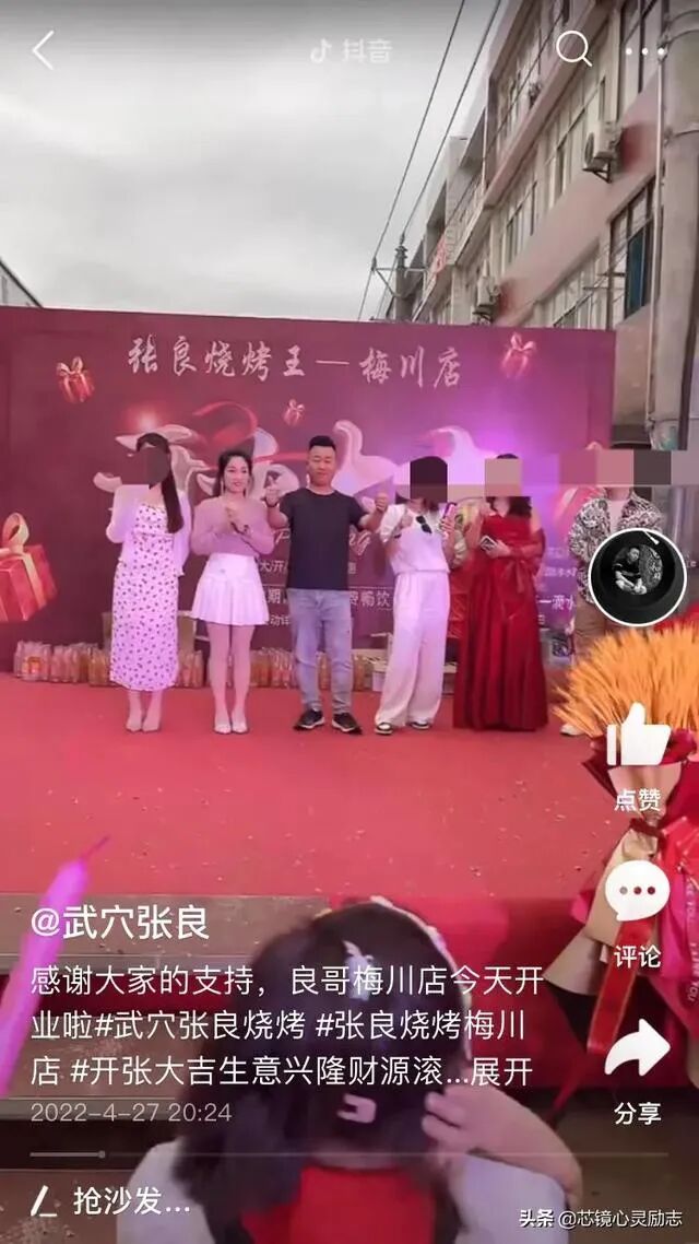 没想到那男的还在梅川开有分店,开店的视频里妻子不在,只见别的女人在侧,搁谁看都有问题,开新店带几个漂亮妹妹却唯独没有带自己的老婆。