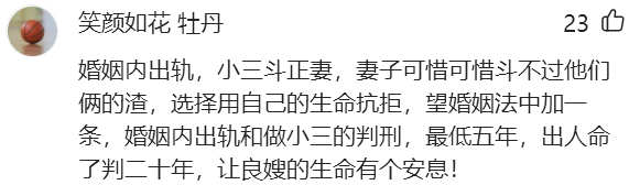 只是可惜女人最后选择了这种方式对待,应该拿起法律的武器来对待负心汉,婚内的夫妻共同财产如果老公拿去买房子送给别的女人肯定是不行的。