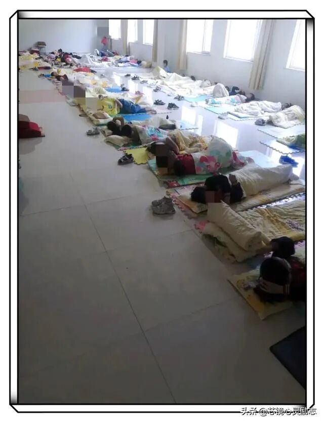我们这很多学校都是让学生中午回家吃饭休息的,可以中午留在学校的就往往没有像照片里的休息室,也就让孩子们吃完饭就坐教室里趴桌子上睡觉。