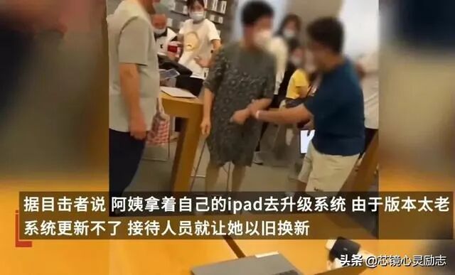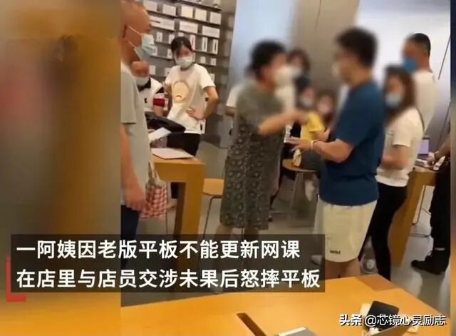 大妈拿旧iPad被告知无法更新后“啪啪啪”怒摔了几次才愤然离开,目击者称:店员原本让她以旧换新!!