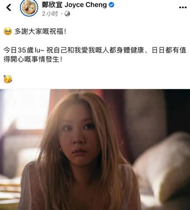 欣宜35岁生日在自己的脸书上感谢朋友们的生日祝福并写下“今日35岁LU~祝自己和我爱的人都身体健康,日日都有值得开心的事情发生!”