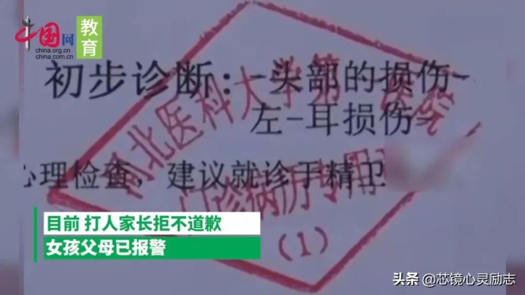 近日,河北石家庄,有位8岁女孩和小朋友们在小区玩耍时,不慎弄坏了一个小男孩的电话手表,小男孩的妈妈发现后直接过来当着几个小朋友的面,左右开弓连续扇了小女孩5个耳光,导致小女孩耳朵都受伤了,同时还伴有呕吐。