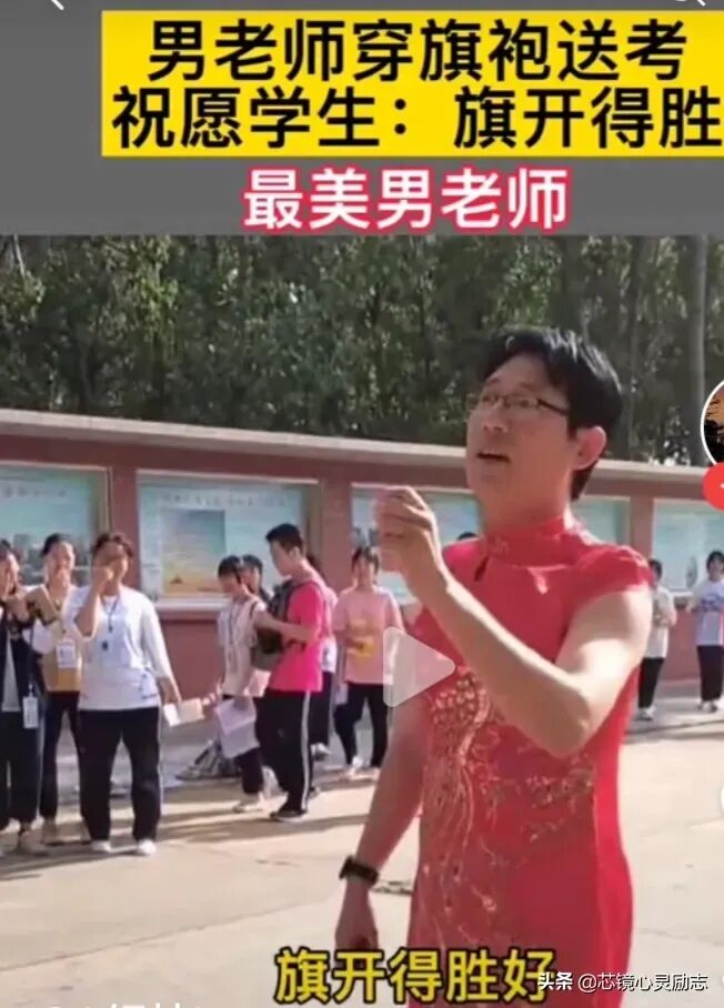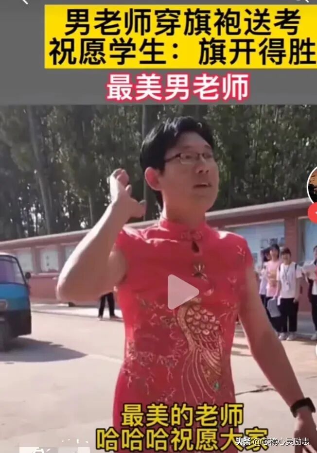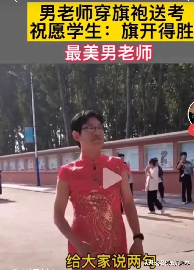 男老师穿旗袍助力高考,祝愿每一位考生都能旗开得胜!