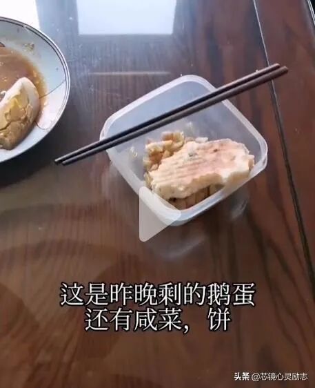 徐州有个男人中午提前回家吃饭,进屋就看到桌上摆着昨天的剩菜:鹅蛋、咸菜、饼,才知道自己不在家时老婆就吃这些。