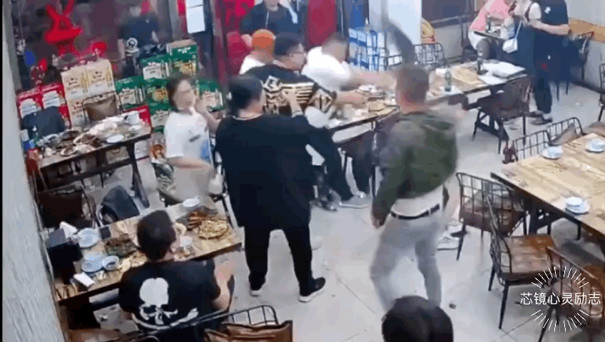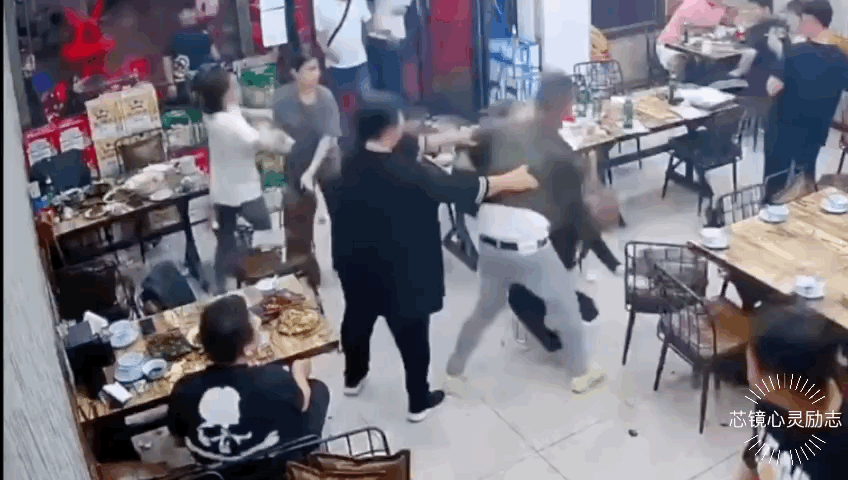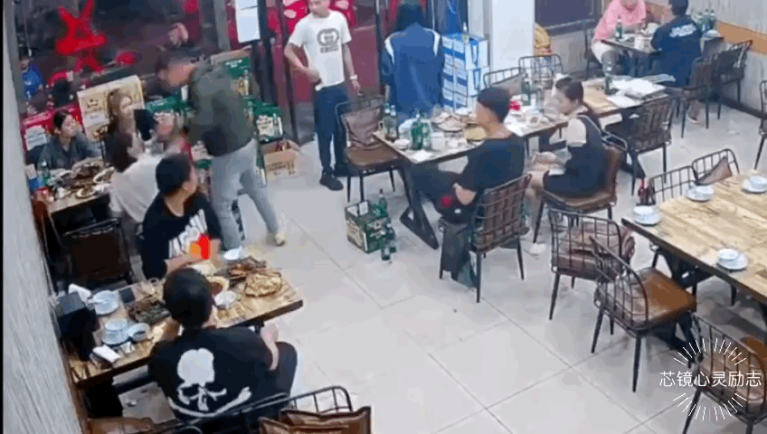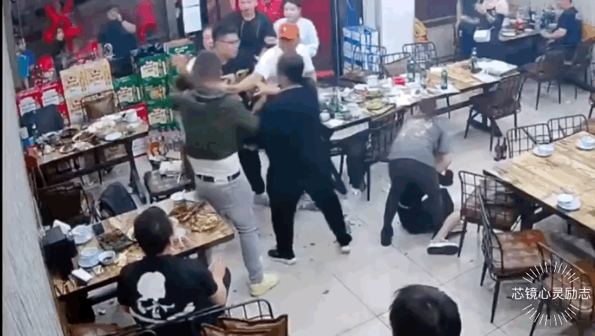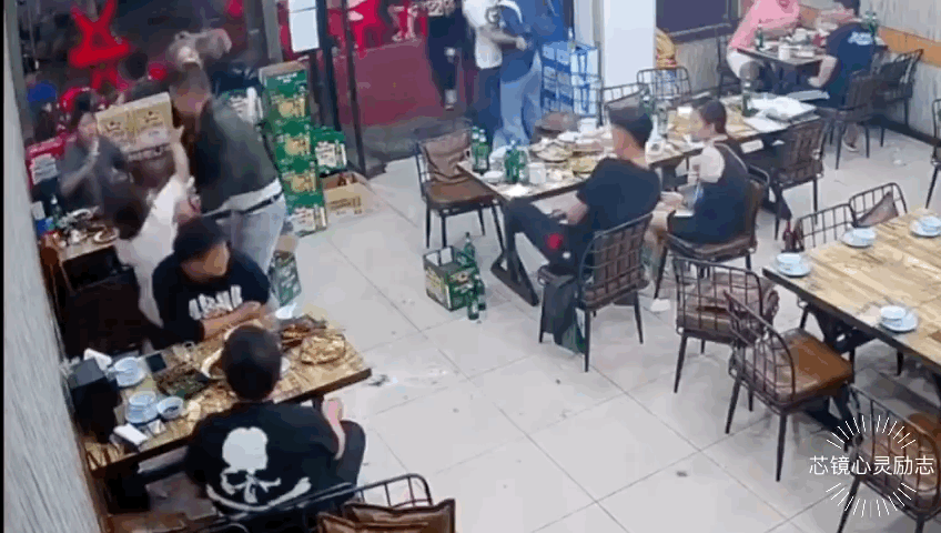女子同行的朋友起身救她,拿起酒瓶砸男的,没想到接下来遭到男的与同伴一起动手,围殴起了女子。