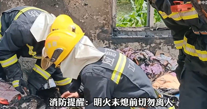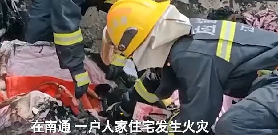6月7日,江苏南通,有一位市民家中突然起火,消防员接报后立即赶赴现场,扑救灭火,并在废墟里翻找,帮户主找回了床垫下藏的万元现金。