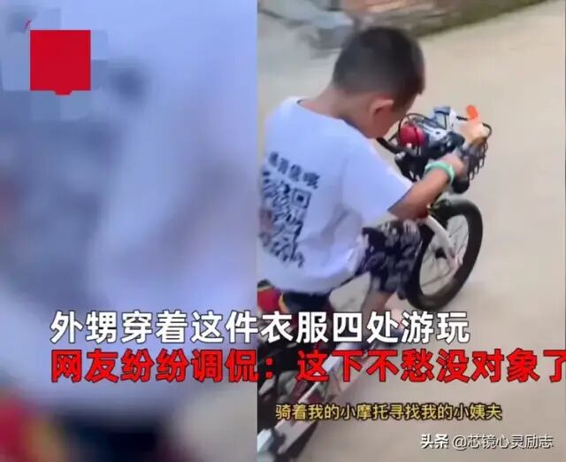 图片中的小男孩穿着小姨送的这件衣服可显眼了,到处玩的时候都穿着,很多网友表示:隔着屏幕都想扫码。孩子小姨这下应该不愁没有对象了!