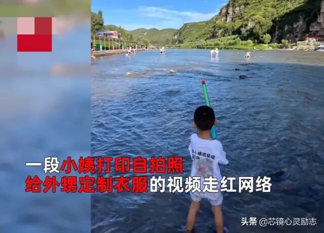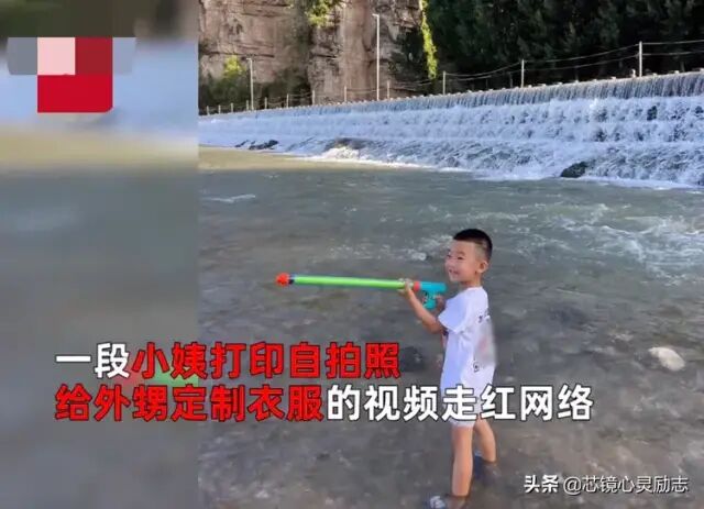 小姨打印自己的照片,给外甥定制衣服!前印小姨自己的照片,后印小姨二维码!网友:找对象新技能get!