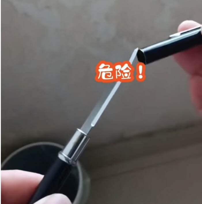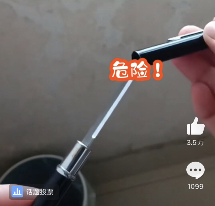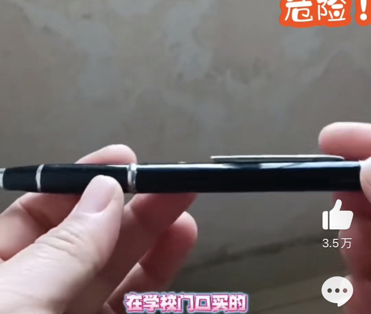 前几天,孩子学校门口有个家长买到一支圆珠笔,打开笔盖里面居然暗藏真刀!