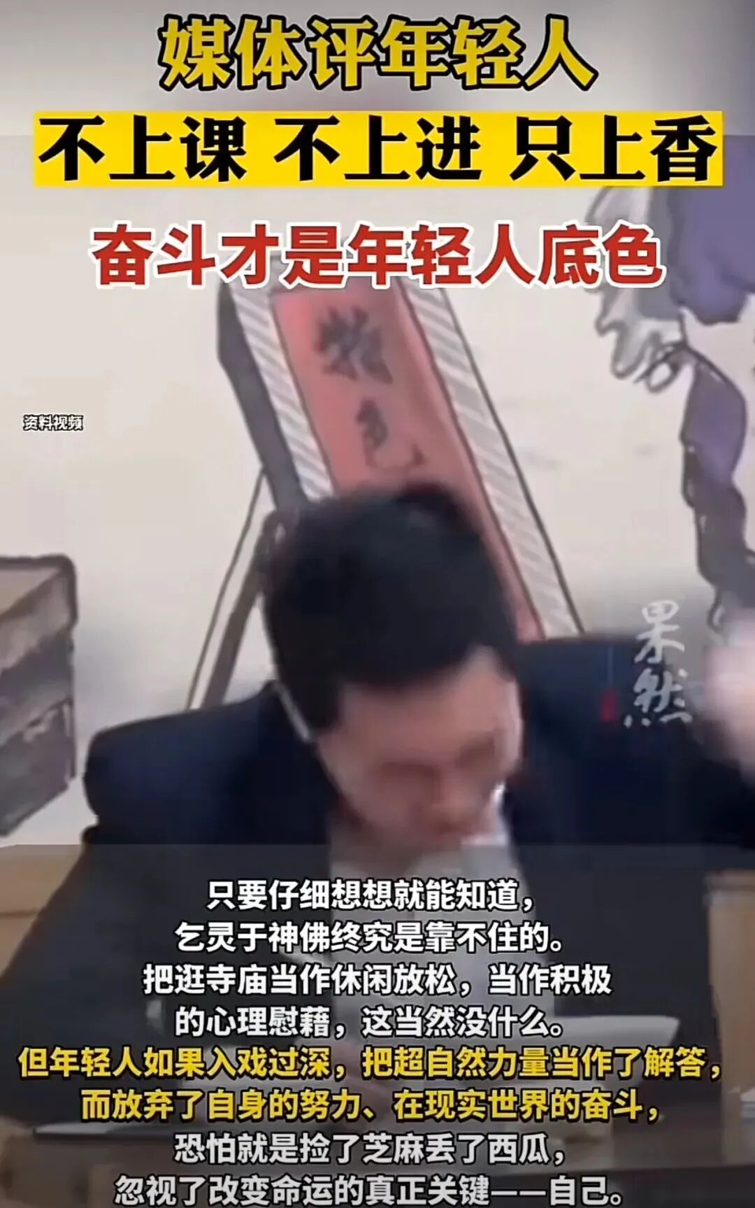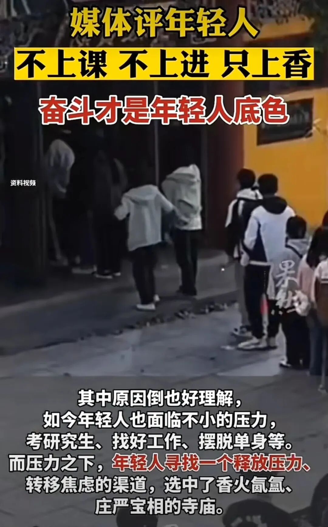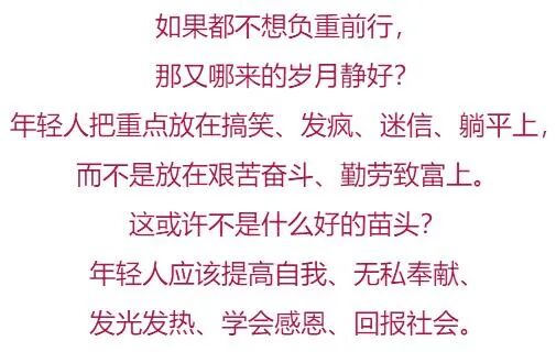 还有网友说:其实是因为搞不来钱和对象,所以搞笑。因为脱不了贫和脱单,所以脱发。因为发不了财和发光,所以发疯。因为不知道上班和上学为了啥,所以上香。因为心中充满了迷茫,只能迷失方向,所以选择了迷信。为什么会这样?难道是他们的错吗?怎么办?到底怎么办?谁能带着他们走向美好生活的前方?