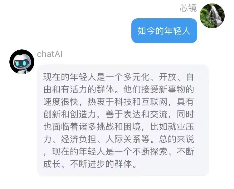 CHATAI说:现在的年轻人是一个多元化、开放、自由和有活力的群体。他们接受新事物的速度很快,热衷于科技和互联网,具有创新和创造力,善于表达和交流,同时也面临着诸多挑战和困境,比如就业压力、经济负担、人际关系等。总的来说,现在的年轻人是一个不断探索、不断成长、不断进步的群体。