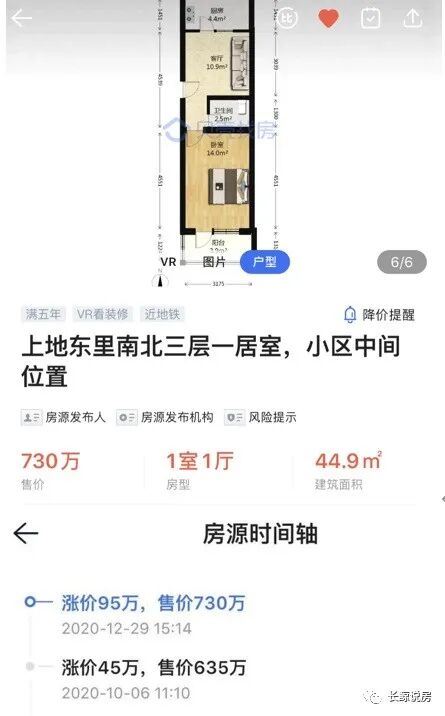 我们再来看上地东里的一则调价记录,2020年底,曾经一夜涨价95万。