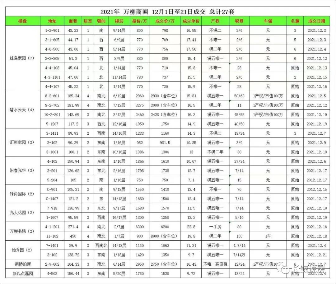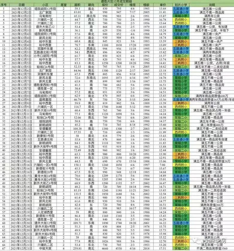 网上有人整理了12月份德胜、万柳区域的成交情况,供近期计划买房的人参考。