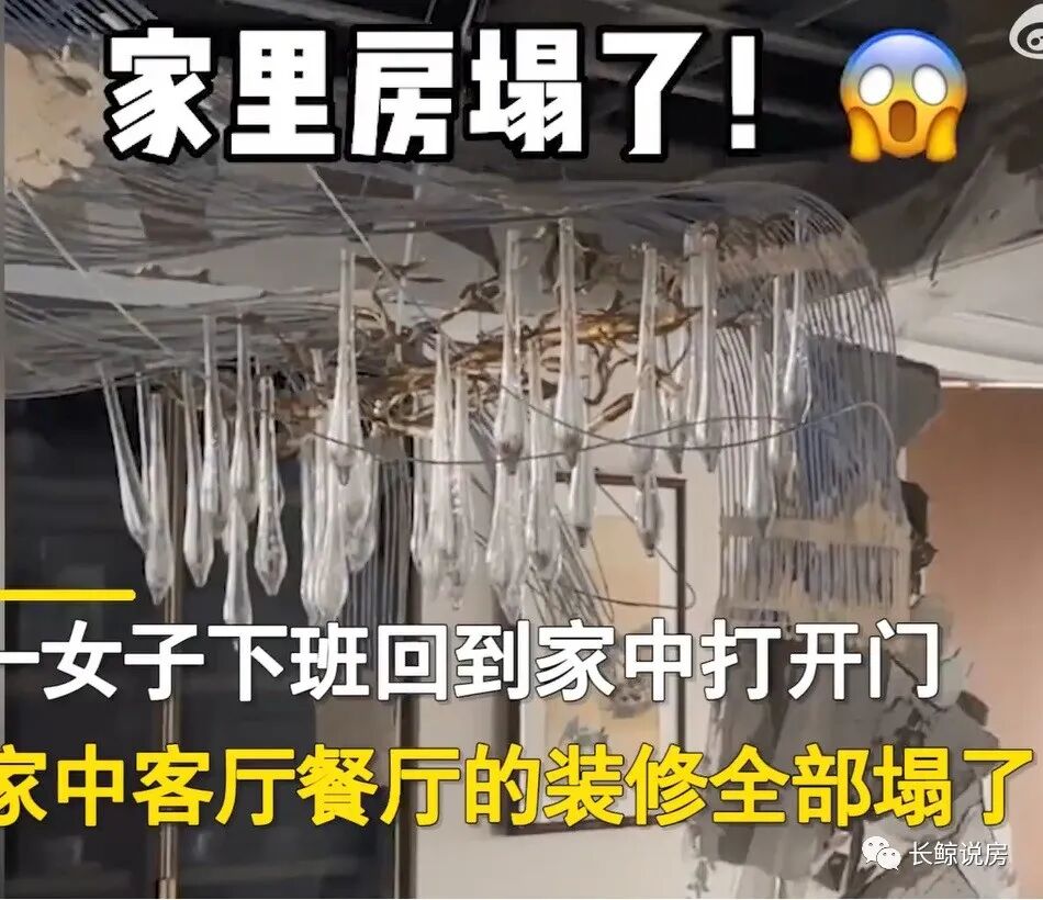 按照上业主自己的说法,“表示家中的毛细系统一直漏水,漏着漏着就变成了现在这样,幸好当时塌的时候家中无人,当初家中装修时没动过顶是精装交付。女子表示自己当初花两千万,买的高端社区住成这样太气愤了。早前有邻居就说房子漏雨严重,没想到最终自己也成了受害者。”