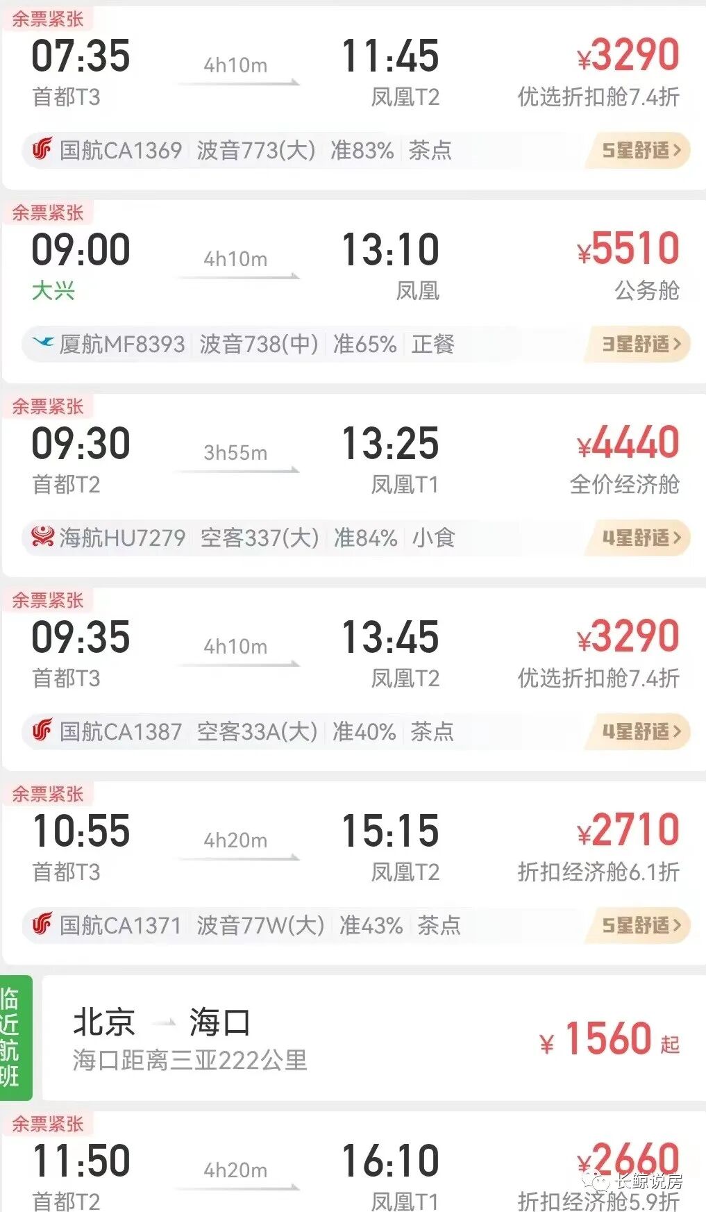 从北京直飞海口的航班,还有11架飞机,同样显示余票紧张。这30架直飞海口、三亚的飞机,每天从北京空运过去的人马可不止一个加强团。