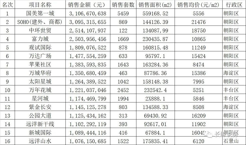 网上看到一则消息,2005年,北京房地产市场销售额前20名的榜单。这个榜单里,很多到现在也是片区内代表性的楼盘。