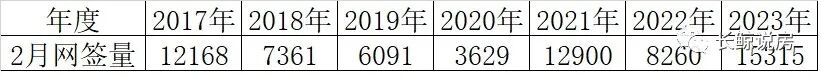 从2017年至今六年,即使刨除春节假期因素的影响,今年2月份的网签量依然最高。