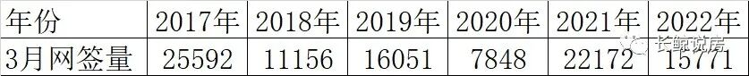 下图是自2017年2022年,每年3月北京二手房网签量列表,感兴趣的读者可以自行做个对比。