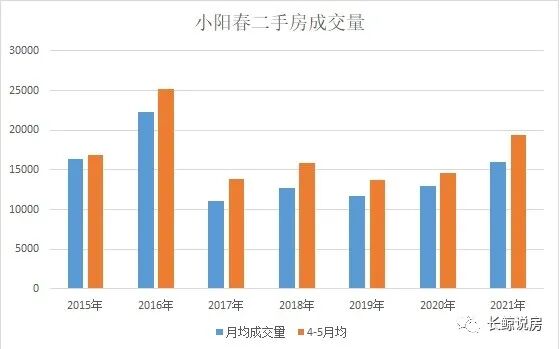 通过这张图表,可以直观的看到,2015年,年度月均成交和4-5月月均成交几乎相差不大。除此之外,2016-2021年,4-5月份的月均成交量,确实高于年度的月均成交量。