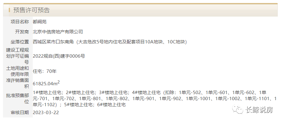 今天,北京市住建委官网公示,万众瞩目的中信城四期,即都阙苑获得预售许可,备案均价16.5万元。