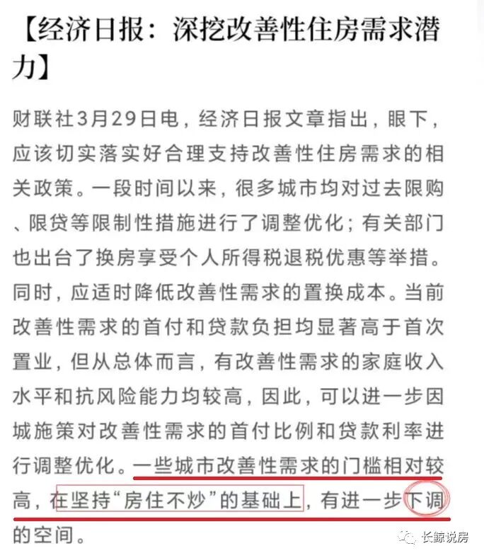 今天,经济日报发了一篇文章《深挖改善性住房需求潜力》。其中说了这么一句: