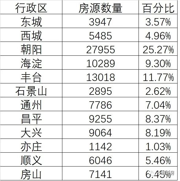 海淀的挂牌量刚刚超过万套,占比9.3%。