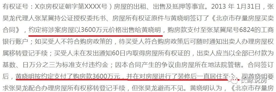 2013年1月31日,黄晓明与张昊龙签订了购房合同。按照判决书公布的信息,房子就是位于朝阳区的星河湾,面积为703.13平方米,总价3600万。