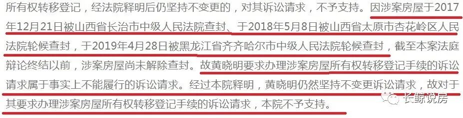 判决书显示,这套房子叠加了几个查封,一直到朝阳法院出判决书的时候,查封还没有解除。