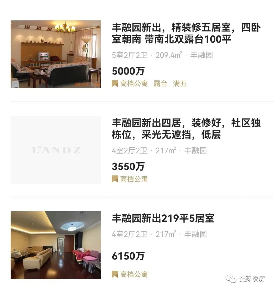 从另外一个豪宅网站上,查到了几套丰融园小区的挂牌房子。
