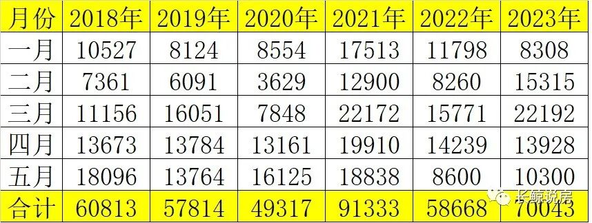 今年5月的数据,我们预估10300套。那么,今年1-5月份的成交量,仅次于2021年同期的91333套,大幅度高于其他年份的成交量。