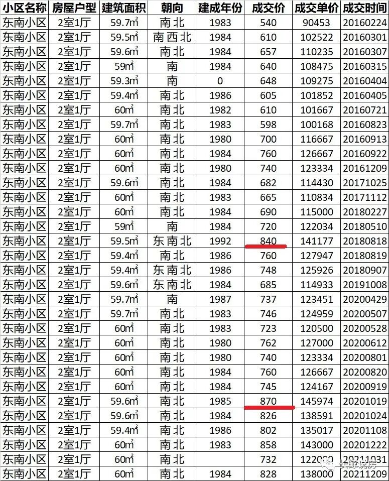 既然心里存疑,于是我翻了下东南小区过去这些年的成交记录。