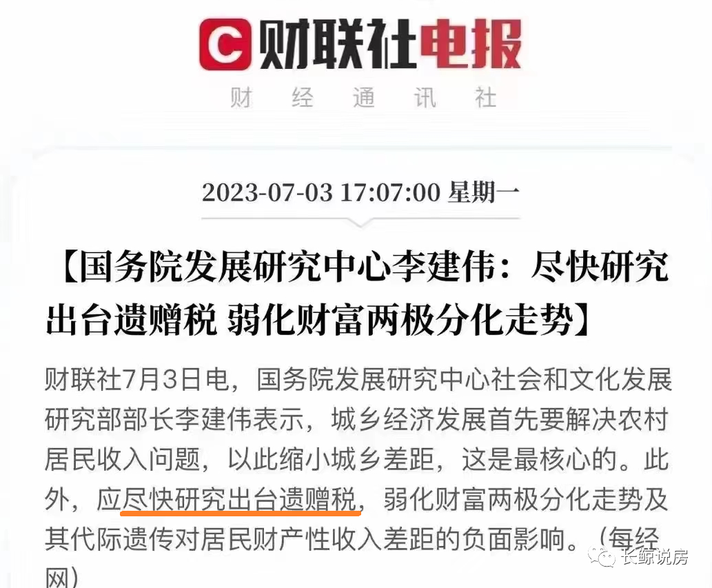 道理很简单,只要遗赠税一出台,房产市场上肯定会有大量的抛盘,甚至在确定出台前,抛盘量一定会激增。