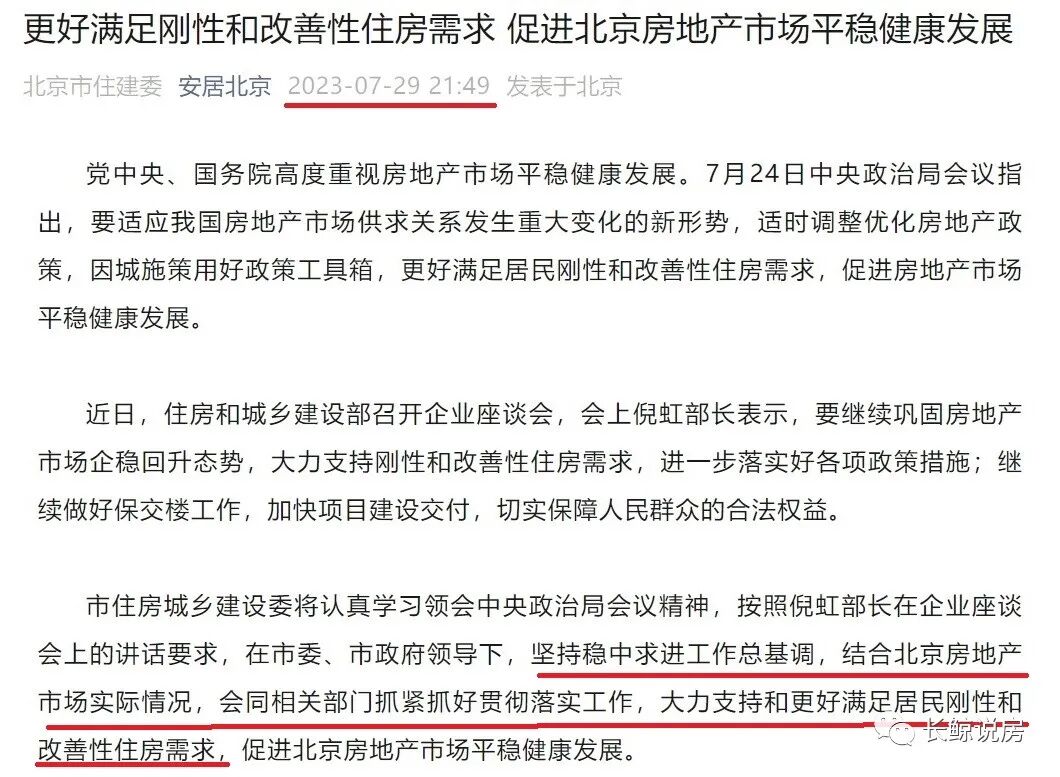 29号晚上,将近22点了,北京住建委官方公众号突然发布了一则消息,标题是:《更好满足刚性和改善性住房需求 促进北京房地产市场平稳健康发展》。