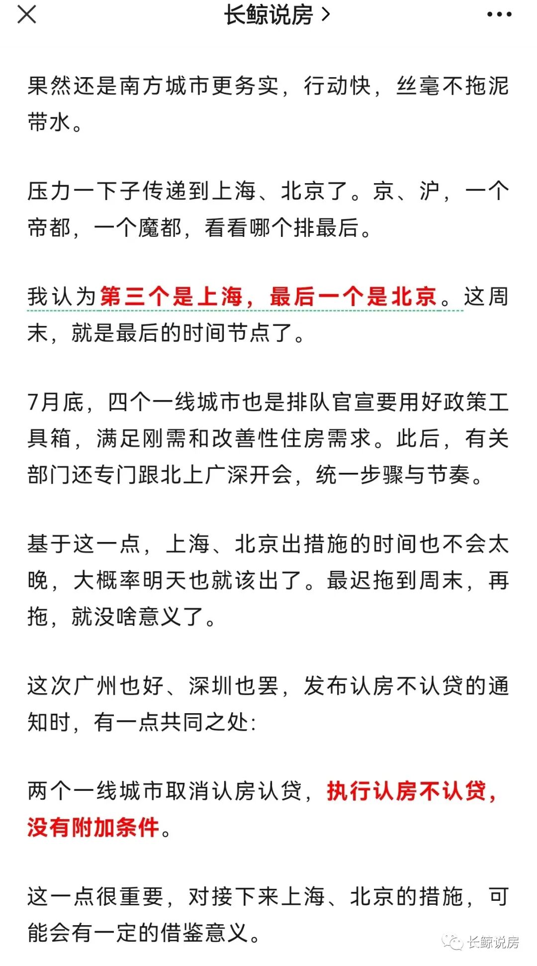 前天广州、深圳落实认房不认贷措施的时候,象征意义就很明显了。