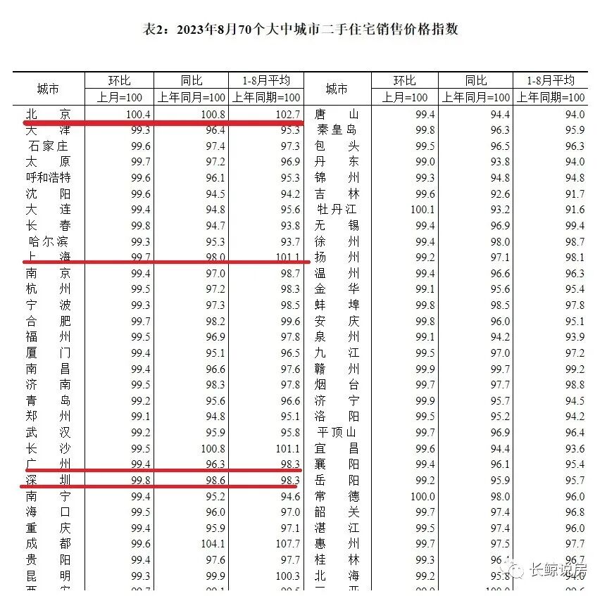 其他三个一线城市,房价环比、同比都在齐刷刷的下跌。