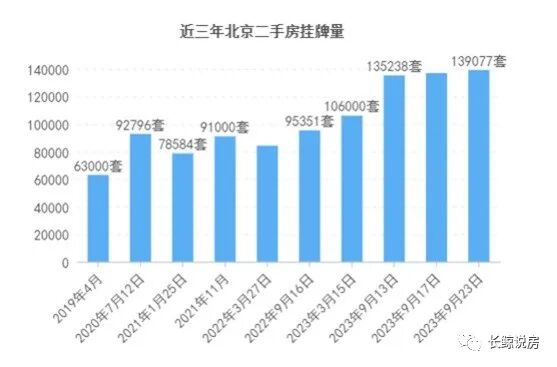 上周我统计了一段时间某中介北京二手房挂牌量每日变化情况,截至9月17日,挂牌量为136919套。一周过去,到9月23日,实时挂牌量显示已经达到139077套,一周增加了两千多套。