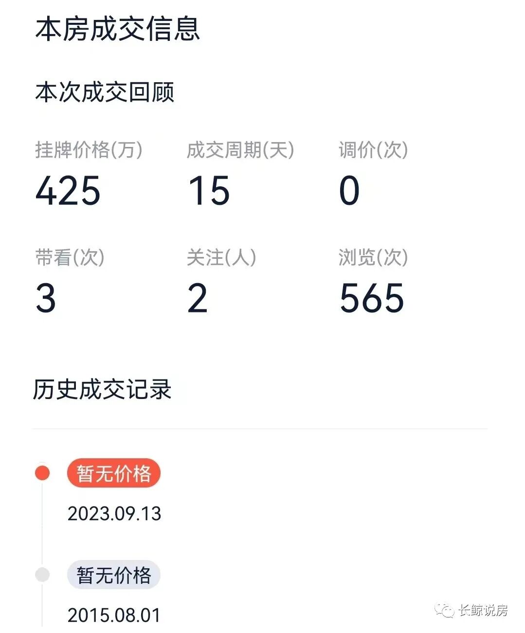 我查到了这套房的两次成交记录:一次成交是23年9月13日,上次成交是15年8月1日。也就是说,卖家是在15年8月买的房子。