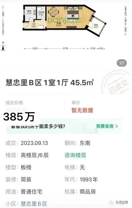 北京楼市,强学区老破小慧忠里,9月有一套一居室的成交价比21年大降183万。
